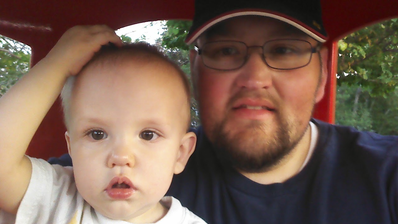 And he has a million toys to choose from since his birthday party, so he always has something in his hands that he is running around with!His daddy is his favorite person in the WHOLE WORLD! He spends most of his day following Tom around the house. Even going so far as to sit outside the bathroom door and wait for him...no matter how long it takes! He is really super needy for his daddy when he is home and then once he leaves to go to work or school, JT is back to our happy, crazy, adventurous boy!